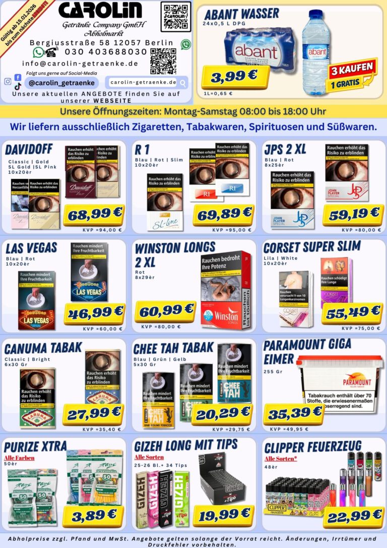 Herzlich Willkommen bei Carolin Getränke Company GmbH, Sie können uns jederzeit kontaktieren.